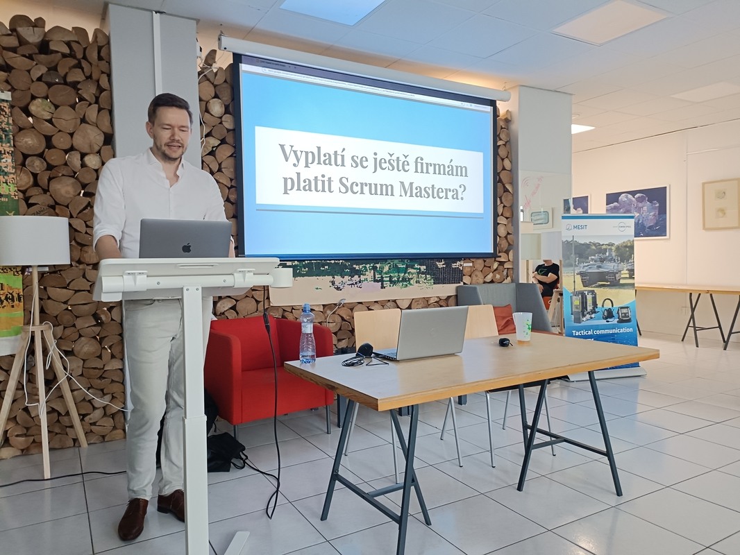 Program nabídl dvě inspirativní přednášky. Jan Hadrava otevřel debatu na téma: Vyplatí se ještě firmám platit Scrum Mastera? a nabídl pohled, jak jeho roli v dnešní době smysluplně využít. Jakub Janoštík pak představil konkrétní ukázky využití umělé inteligence v praxi vývojáře – nechyběly tipy, triky a realistický pohled na to, co AI dnes skutečně umí.