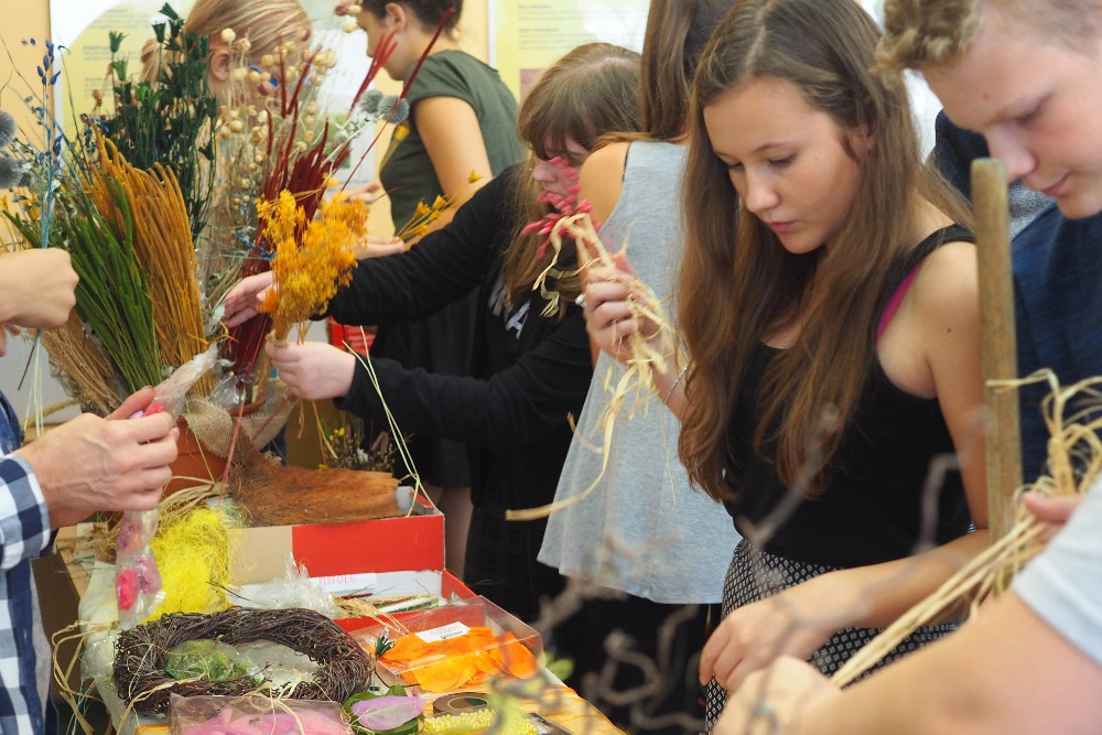 Jelikož je všeobecně známo, že pouhá teorie nikoho příliš nezaujme, všichni nejdříve absolvovali krátké "školení" a ihned poté se vlastnoručně pokusili vytvořit podzimní květinové vazby. Děti se netrpělivě a s nadšením vrhly na připravený materiál a pustily se do práce. Mohly tak zažít nádherný pocit, kdy člověku pod rukama vzniká něco nového, a lze směle prohlásit, že ve většině případů i krásného. V průběhu následujících dvou dnů se žáci ZŠ Větrná seznámili s historií a tradicemi uherskohradišťské čtvrti Mařatice.
