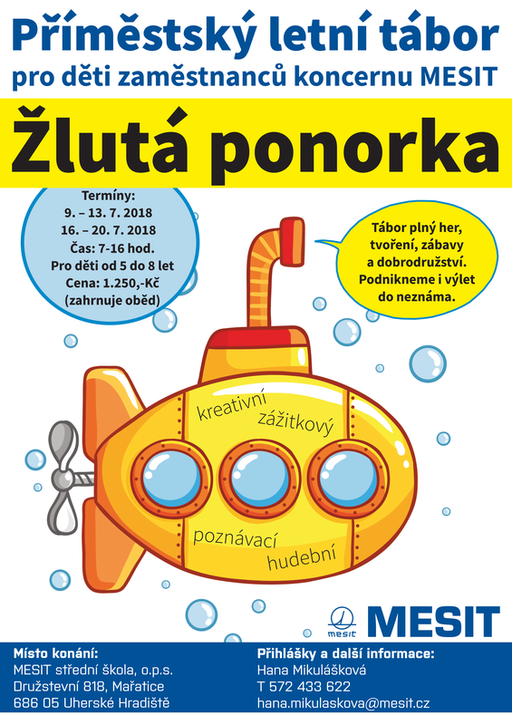 Pro děti zaměstnanců koncernu MESIT jsme připravili dva příměstské tábory. Jeden pro menší děti a jeden pro ty větší. Každý z táborů probíhá ve dvou termínech.
