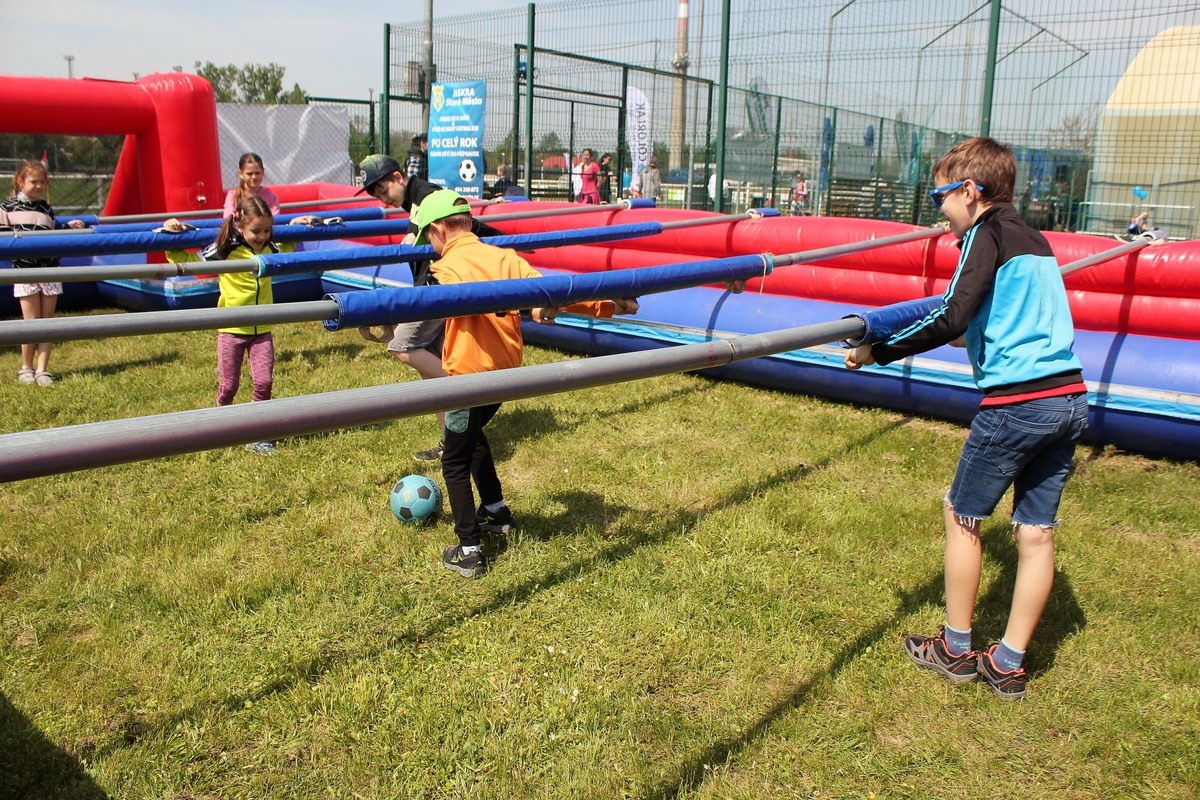 Letos jsme se k akci připojili jako hlavní partner a v sobotu jsme se do akce zapojili i fyzicky, když jsme rodinám našich zaměstnanců uspořádali Sportovní dětský den. Zaměstnanci společností skupiny MESIT se akce ve Starém Městě mohli zúčastnit zdarma, a navíc dostali poukazy na občerstvení. Na místě se pak mohli zastavit v našem stánku, kde jsme pro děti měli nachystané zábavné aktivity. Účastníci akce si u nás mohli kreslit, nechat se potetovat nebo si nechat namalovat něco na obličej. Zatímco rodiče odpočívali, pro děti byly přichystány soutěže ve sportovních disciplínách, a jako odměnu děti obdržely baťůžky doslova napěchované dárečky. Velkým lákadlem bylo také nafukovací hřiště se stolním fotbálkem. V něm si návštěvníci mohli zahrát fotbálek jako živé figurky.