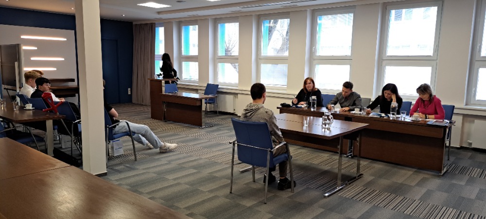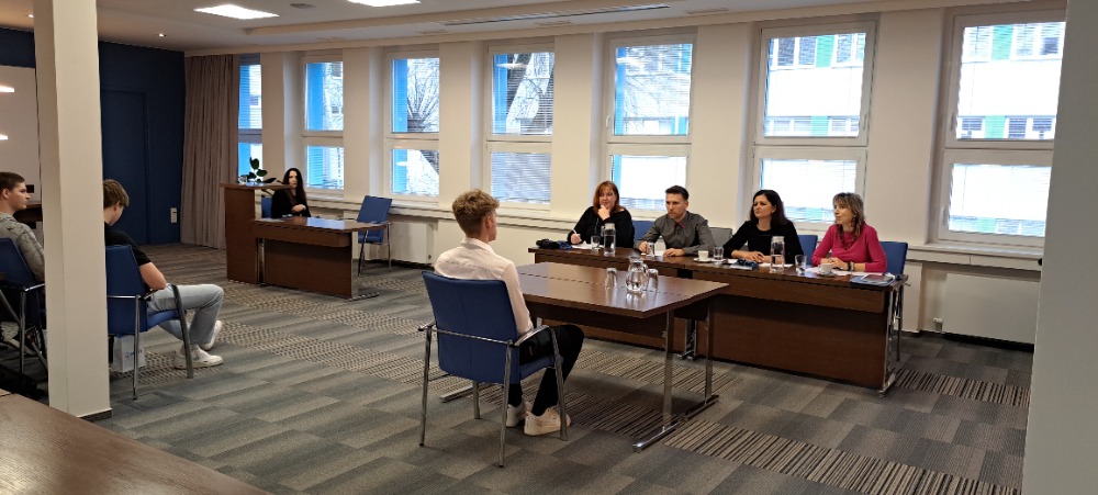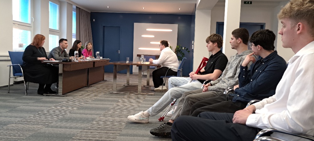 Závěrečná část se uskutečnila přímo v konferenčním sále MESIT, kde pětice žáků úspěšně absolvovala modelové pracovní pohovory na předem zvolené pozice. Pohovory vedli čtyři personalisté a jejich součástí bylo i poskytování zpětné vazby.